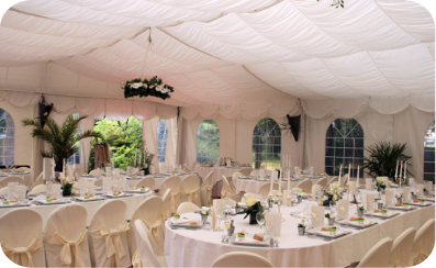 Wenn Sie es wünschen, verwandeln wir Ihr eigenes Reich in einen Festsaal oder/und bauen Zelte und Baldachine in Ihrem Garten auf.